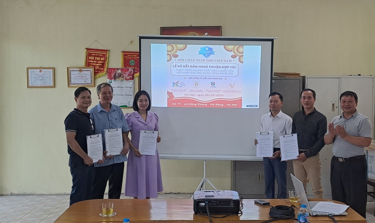 Sáng ngày 09 tháng 10 năm 2025 – Ngành chăn nuôi thỏ Việt Nam vừa đánh dấu một cột mốc quan trọng với Lễ ký kết Thỏa thuận Ghi nhớ Hợp tác (MOU) phát triển ngành thỏ theo chuỗi liên kết khép kín ứng dụng công nghệ số. Sự kiện diễn ra trang trọng tại trụ sở Hội Chăn nuôi Thỏ Việt Nam (số 77 Lê Hồng Phong, Hà Đông, Hà Nội), quy tụ đông đảo các bên liên quan, với quyết tâm đưa ngành thỏ Việt vươn tầm quốc tế trong kỷ nguyên số.